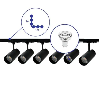 | Herstellername | Complete L shaped 1-Phase Track Set Black incl. 6x Spot fixture + GU10 2700K 3W Dim – 1 x 1 meter i | |