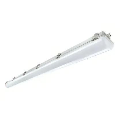 Mit ihren Schutzklassifizierungen IP66 und IK08 ist die LED sowohl im Innen- als auch im Aussenbereich verwendbar. Diese Ausführung hat ein kaltweisses Licht (4.000 K) und ist 150 cm lang. Beliebte Anwendungsgebiete der LED sind Industriebetriebe. Die Feuchtraumleuchte kann aber beispielsweise auch in Parkhäusern oder Fluren verwendet werden. Mit ihrem Abstrahlwinkel von 120° ist die LED ideal als Grundbeleuchtung oder zur Ausleuchtung grosser Flächen geeignet.