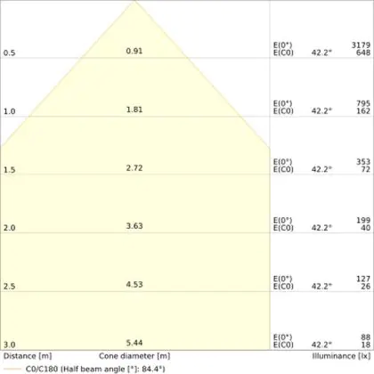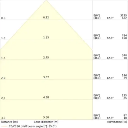 Der Abstrahlwinkel bezeichnet den Winkel, in dem das Licht aus der Lichtquelle ausgestrahlt wird. Er wird in Grad (D) angegeben. Je geringer die Gradzahl des Abstrahlwinkels ist, desto kleiner ist auch der Durchmesser des Lichtkegels, den die Lichtquelle produziert.