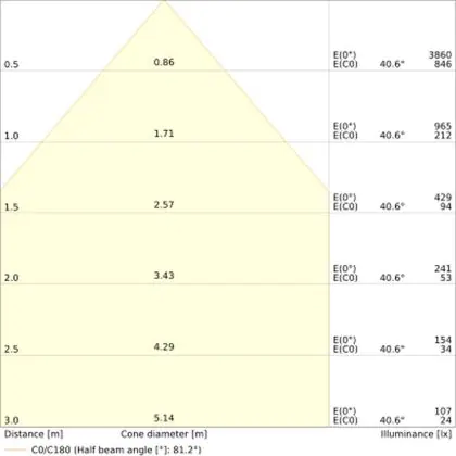 Der Abstrahlwinkel bezeichnet den Winkel, in dem das Licht aus der Lichtquelle ausgestrahlt wird. Er wird in Grad (D) angegeben. Je geringer die Gradzahl des Abstrahlwinkels ist, desto kleiner ist auch der Durchmesser des Lichtkegels, den die Lichtquelle produziert.