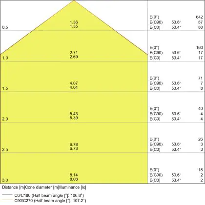 Der Abstrahlwinkel bezeichnet den Winkel, in dem das Licht aus der Lichtquelle ausgestrahlt wird. Er wird in Grad (D) angegeben. Je geringer die Gradzahl des Abstrahlwinkels ist, desto kleiner ist auch der Durchmesser des Lichtkegels, den die Lichtquelle produziert.