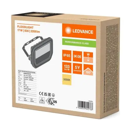 Ledvance Led-Scheinwerfer Aluminium Schwarz 17W 2200lm 100D - 830 | IP66 - Symmetrisch
