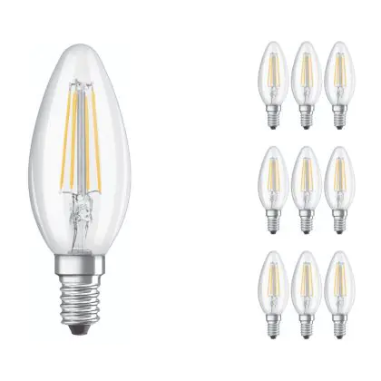 Mehrfachpackung 10x Ledvance CLASSIC LED E14 Kerze Fadenlampe Klar 4W 470lm - 827 | Ersatz für 40W