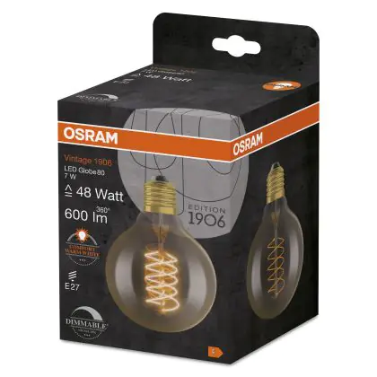 Osram Vintage 1906 LED E27 Globe Filament Gold 80mm 7W 600lm - 822 Extra Warm White | Dimmable