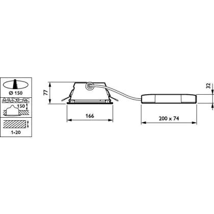 Der Ausschnitt einer Leuchte unterscheidet sich von den Abmessungen der Leuchte selbst und bezeichnet speziell die Grösse der Öffnung in der Decke, die für die sichere Montage der Lichtquelle benötigt wird.