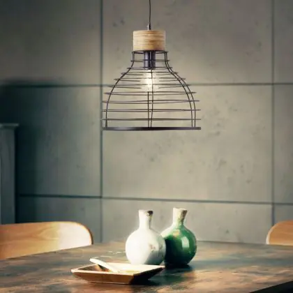 Brilliant Avia Suspension Luminaire Métal Bois Noir | 350mm - Convient pour 1x E27