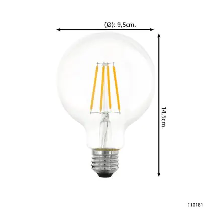 Cette ampoule Eglo LED Globe E27 Filament Claire 7.3W 806lm - 827 | Dimmable - Remplacement 60W est l’alternative idéale pour la remplacement de votre ampoule classique de 60 W. La technologie LED intégrée vous offrira de nombreux avantages. Les ampoules à incandescence traditionnelles ont une durée de vie limitée. Cette alternative LED vous permettra de profiter d’un éclairage durable et fiable.