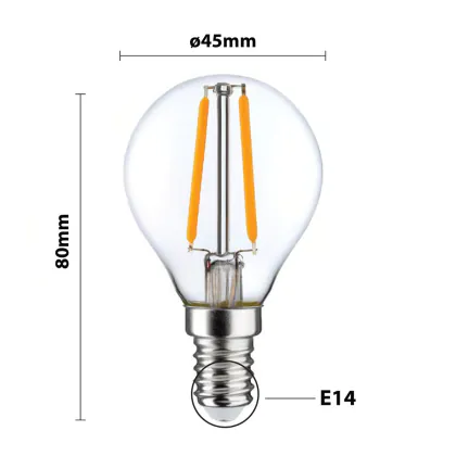 Description LED E14 Boule Filament Claire 2.5W 250lm – Dimmable - Remplacement 25W