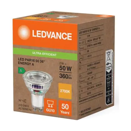 Description Ledvance LED PAR16 GU10 Réflecteur 2W 360lm 36D - 827 | Remplacement 50W