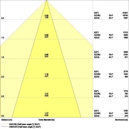Le code couleur se compose de l'indice de rendu des couleurs (IRC) et de la température de couleur (Kelvin). Le premier chiffre indique le rendu des couleurs (1 = très mauvais rendu des couleurs, 9 = meilleure authenticité des couleurs). Le deuxième et troisième chiffre indiquent la température de la couleur. Exemple : Le code couleur "830" indique que la lampe a un bon rendu des couleurs (8) et une couleur de lumière blanche chaude (30 = 3000K). |