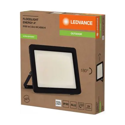 Le Ledvance Projecteur LED Aluminium Noir 24.5W 4600lm 100D - 840 | IP65 - Symétrique permet une économie d’énergie importante tout en conservant une excellente qualité d’éclairage. Sa technologie LED Intégré lui permet également d’avoir une très longue durée de vie pouvant aller jusqu’à 50000 heures. Ce projecteur LED est étanche, avec son indice de protection IP65 lui permettant d’être hermétique à la poussière et à l’eau. Disponible dans la couleur 4000K - Blanc Froid et un flux lumineux de 4600 Lm, ce projecteur LED est la solution idéale pour le remplacement de vos anciens projecteurs conventionnels.