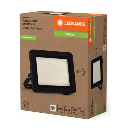Le Ledvance Projecteur LED Aluminium Noir 5W 870lm 95D - 840 | IP65 - Symétrique permet une économie d’énergie importante tout en conservant une excellente qualité d’éclairage. Sa technologie LED Intégré lui permet également d’avoir une très longue durée de vie pouvant aller jusqu’à 50000 heures. Ce projecteur LED est étanche, avec son indice de protection IP65 lui permettant d’être hermétique à la poussière et à l’eau. Disponible dans la couleur 4000K - Blanc Froid et un flux lumineux de 870 Lm, ce projecteur LED est la solution idéale pour le remplacement de vos anciens projecteurs conventionnels.
