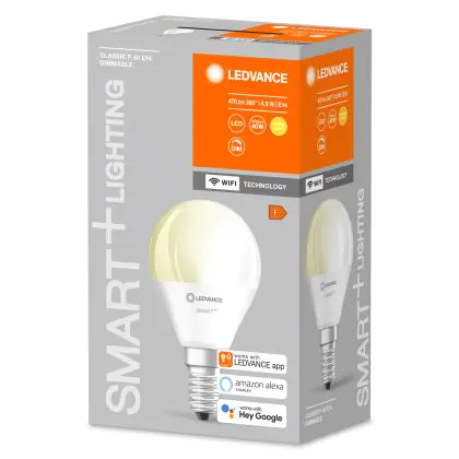 Cette ampoule Ledvance Smart+ Wifi E14 Poire 5W 470lm - 827 | Dimmable - Remplacement 40W avec son efficacité lumineuse de lumen par watt vous permettra de profiter d’un éclairage de qualité. Avec sa durée de vie de 20000 heures, vous n’aurez pas à vous soucier de son remplacement avant quelques années.