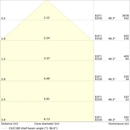 • Angle de diffusion: 95 °