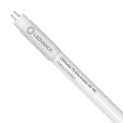 Tous les tubes fluorescents TL5 utilisent un ballast électronique (HF). Les tubes LED utilisent un ballast HF et/ou ils peuvent être installés directement sur 230V (Mains / AC). S'ils fonctionnent sur les deux, on dit qu'ils sont universels (UN). Ce tube fluorescent T5 LED de Ledvance fonctionne avec un .