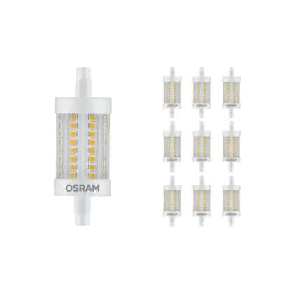 Lot 10x Ledvance Performance LED R7s double Ended 78mm Claire 9.5W 1055lm - 827 | Dimmable - Remplacement 75W est une ampoule tubulaire linéaire à double extrémité. Ce type d’ampoule permet de délivrer une lumière homogène à 360° avec comme température de couleur . Cette ampoule LED R7s de chez Osram est la solution idéale pour le remplacement de vos anciennes ampoules halogènes. Cette ampoule LED n’a pas besoin de transformateur, elle fonctionne avec 230V et peut se connecter directement sur le secteur électrique.