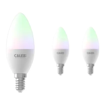 Description Lot 3x Calex Smart Tuya Wifi E14 Bougie 5W 470lm - 822-840 Accordable Blanc | RGBW - Dimmable - Remplacement 40W