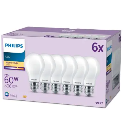 | Nom du fabricant | Box 6 stuks - Philips LED Lamp Mat - 60 W - E27 - Warmwit licht | |