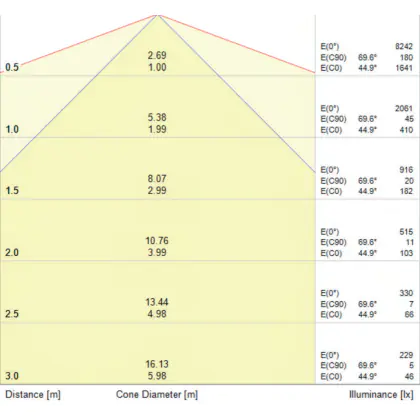 Un angle de diffusion est également appelé angle de rayonnement et indique l'angle du faisceau lumineux provenant d'une source lumineuse. Plus l'angle de diffusion en degrés (D) est petit, plus le faisceau est étroit. Vous voulez en savoir plus? Alors lisez notre blog.