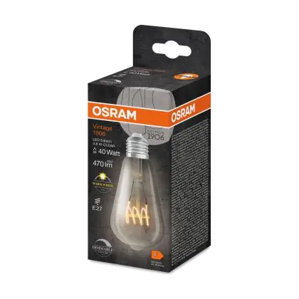 Description Osram Vintage 1906 LED E27 Edison Filament Claire 4.8W 470lm - 827 | Dimmable - Remplacement 40W