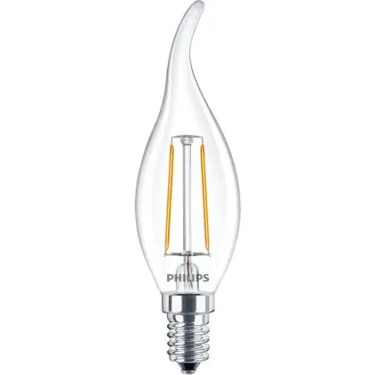 Cette ampoule Philips Corepro LED Bougie E14 Flamme Filament Claire 2W 250lm - 827 | Remplacement 25W avec son efficacité lumineuse de lumen par watt vous permettra de profiter d’un éclairage de qualité. Avec sa durée de vie de 15000 heures, vous n’aurez pas à vous soucier de son remplacement avant quelques années.