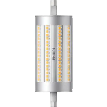 Philips Corepro LED Lineair R7s 118mm 17.5W 2460lm - 840 Blanc Froid | Dimmable - Équivalent 150W est une ampoule tubulaire linéaire à double extrémité. Ce type d’ampoule permet de délivrer une lumière homogène à 360° avec comme température de couleur 4000K - Blanc Froid. Cette ampoule LED R7s de chez Philips est la solution idéale pour le remplacement de vos anciennes ampoules halogènes. Cette ampoule LED n’a pas besoin de transformateur, elle fonctionne avec 230V et peut se connecter directement sur le secteur électrique.