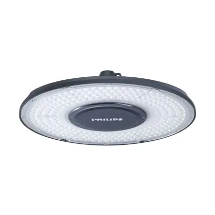 Le Philips Highbay LED CoreLine Aluminium Gris 51W 10000lm 90D - 840 Blanc Froid |IP66 est un puissant luminaire qui est très souvent utilisé pour l’éclairage industriel. Ce luminaire suspendu propage un puissant flux lumineux de 10000 Lm et offrant un excellent rendu de couleurs par rapport aux luminaires traditionnels. Cet high-bay LED est capable de résister aux différentes températures extrêmes que l’on peut retrouver dans les hangars, entrepôts ou autres halls industriels. La technologie LED Intégré sur ce luminaire permet de faire d’importantes économies d’énergie. En effet, l’high-bay propose une puissance de 51W pour un équivalent de 250W pour les appareils classiques et dispose d’une durée de vie pouvant aller jusqu’à 100000 heures.